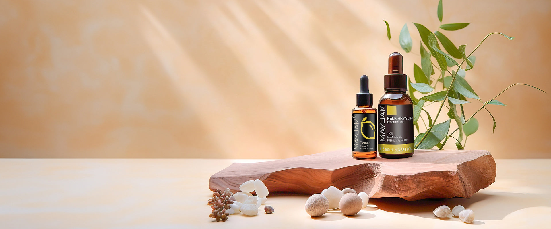 Pair large text with a full-width image to draw attention to an important detail of your brand or product line.